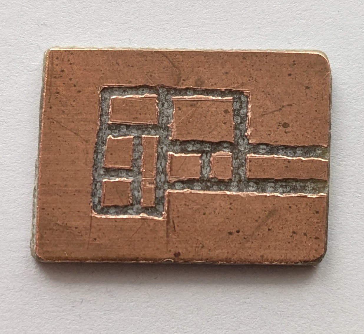 I glued the printout onto a 2 sided copper clad board and initially tried going at it with a box cutter, that didn't end up going so well so I switched to a dremel which did quick work of the copper. Not the cleanest job, but good enough.